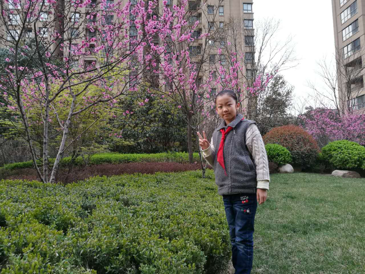 记得有一次他在小区里面看到一个腿受伤的老奶奶提着东西我没提醒他,他主动走过去帮忙提东西到老奶奶住的那栋楼送到家门口。还有一次在庆兴公园里玩的时候他看到一个小女孩摔倒地上哭着,旁边没有其他人,他跑过去把她扶起来,带到了人多的地方去找她的爸爸妈妈。