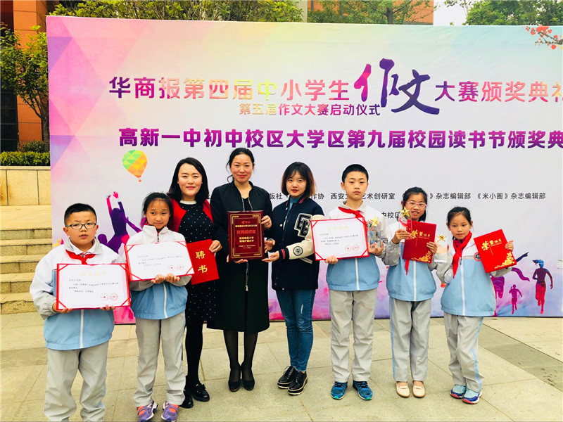 4月11日,华商报第四届中小学生作文大赛颁奖典礼暨第五届中小学生作文大赛启动仪式在高新一中初中部隆重举行。我校教导处徐艳霞主任带领我校靳燕毅、吴丹老师以及五名获奖学生参加了此次颁奖典礼。