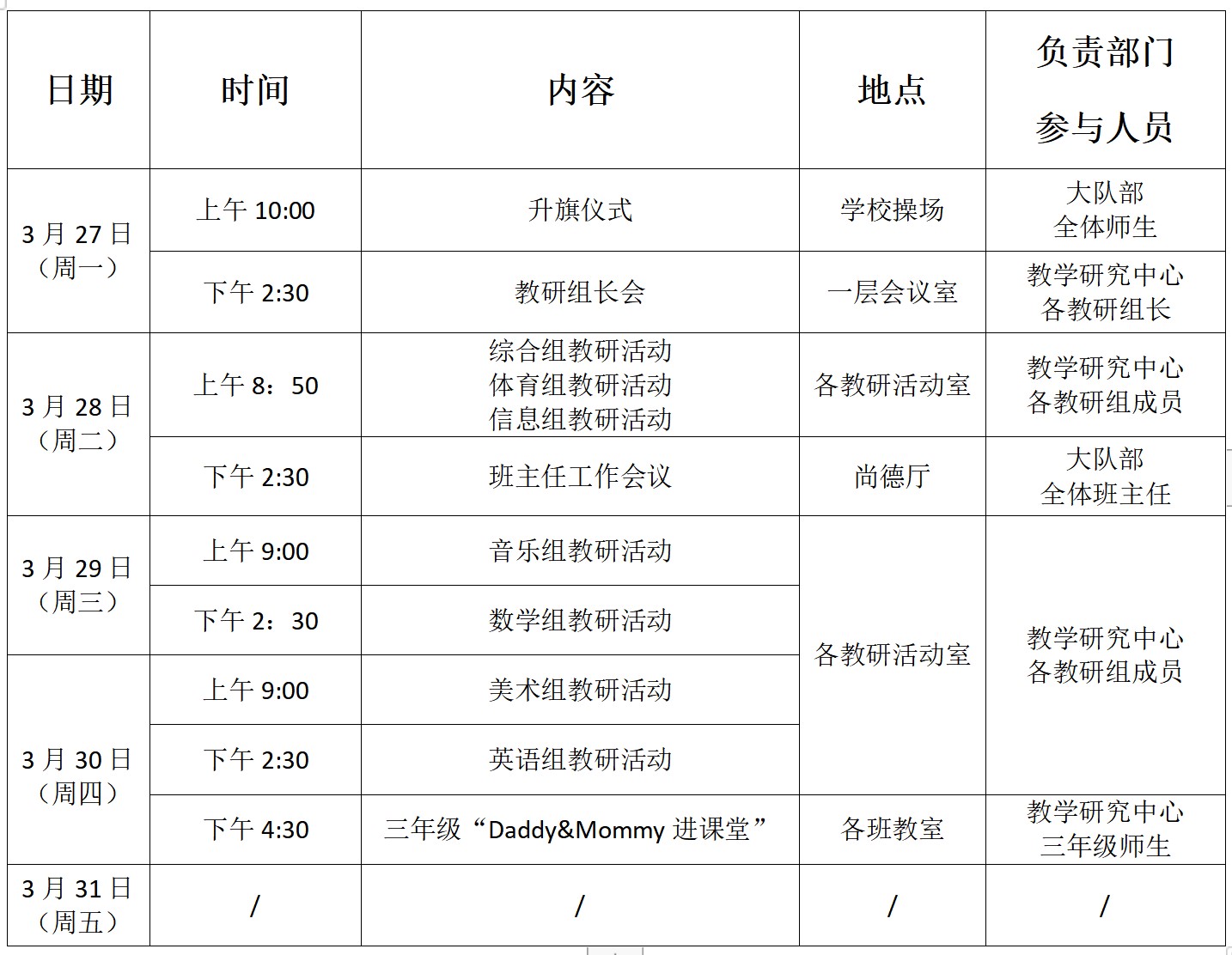备注:本周工作安排参看上表,如有变动,请以具体通知为准。