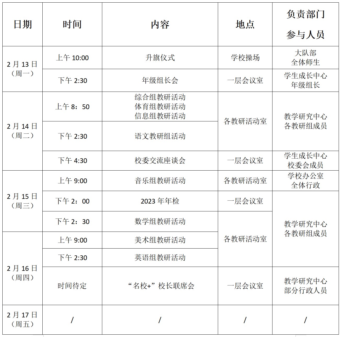 备注:如以上各项工作时间地点有变动,请以具体通知为准。